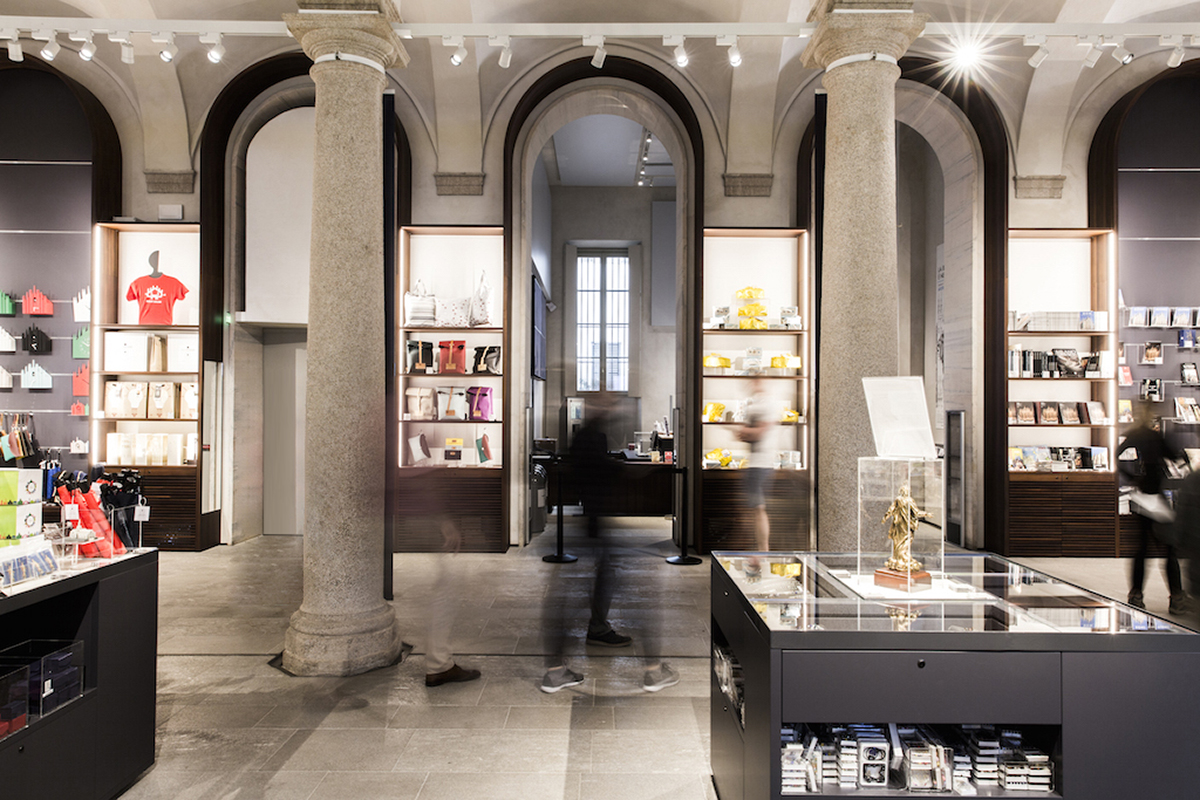 Il progetto di biglietteria e shop per la Veneranda Fabbrica del Duomo risponde alla richiesta di integrare le due funzioni all’interno della Sala delle Colonne e si concretizza in un allestimento che mira a valorizzare l’esperienza di accesso al complesso monumentale. L’ingresso introduce il visitatore al tema, raccontando la storia dell’estrazione e della lavorazione dei blocchi di marmo dalle caratteristiche venature rosa provenienti dalle cave di Candoglia ed impiegati per la costruzione del Duomo. La Sala delle Colonne offre un’esperienza immersiva, l’ambizione è di una totale integrazione all’architettura dello spazio. Nella navata centrale gli elementi espositivi bassi disposti in fila rispettano le focali dettate dalla doppia fila di colonne in stile neoclassico e rievocano le chiatte impiegate per il trasporto dei marmi sui navigli. Al lato una grande parete espositiva riprende il disegno geometrico delle arcate della sala, un ritmo di pieni e vuoti dettato dalle “nicchie-vetrina” dedicate ai prodotti dello shop. Uno spazio funzionale dove si racconta la storia del Duomo di Milano. Il progetto è stato realizzato in collaborazione con Slow Wood che si è occupata della produzione e dell’ingegnerizzazione degli arredi.